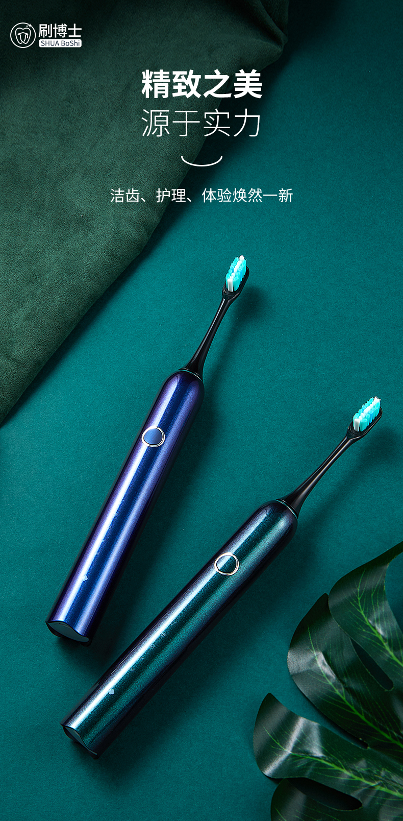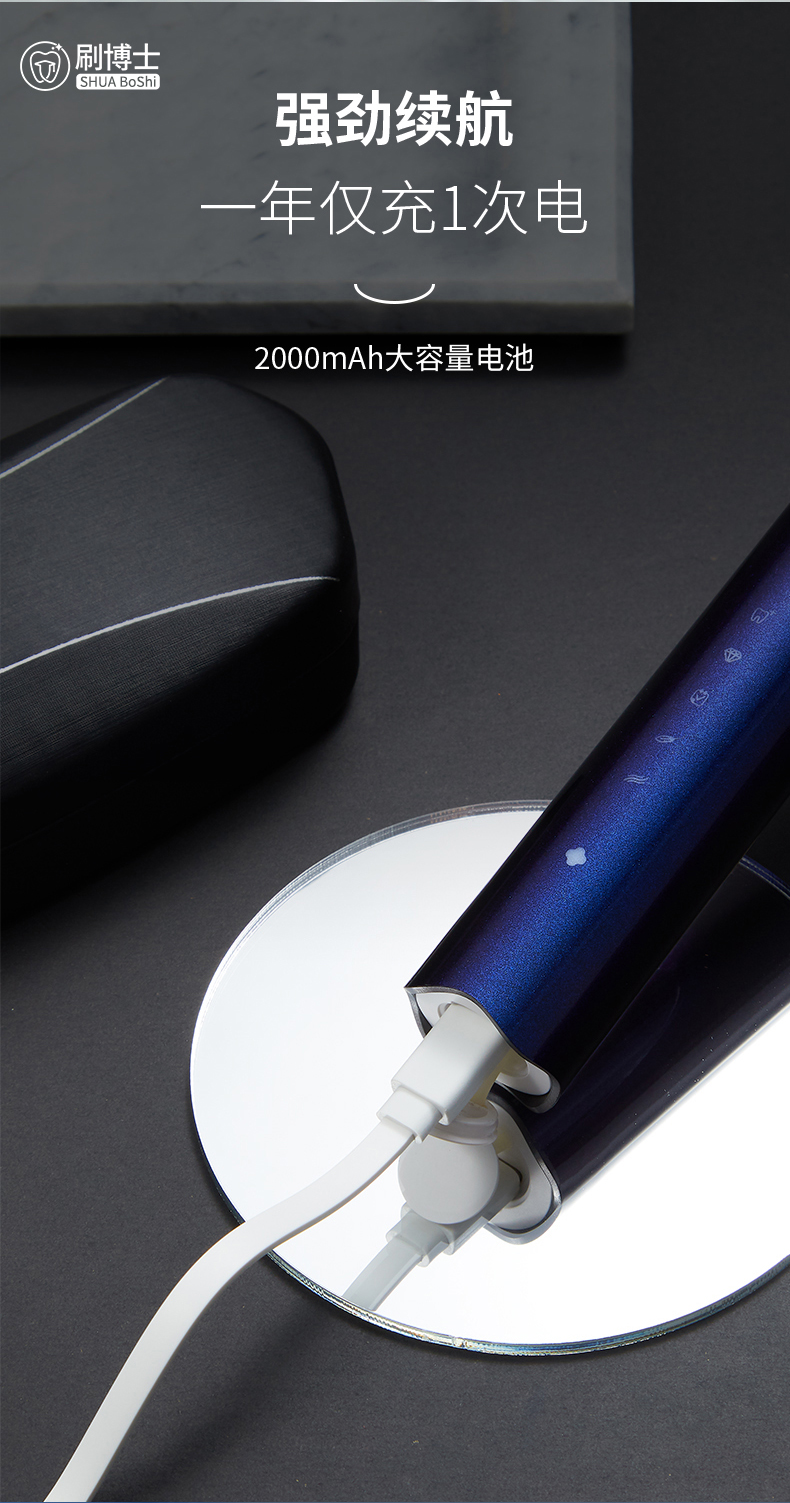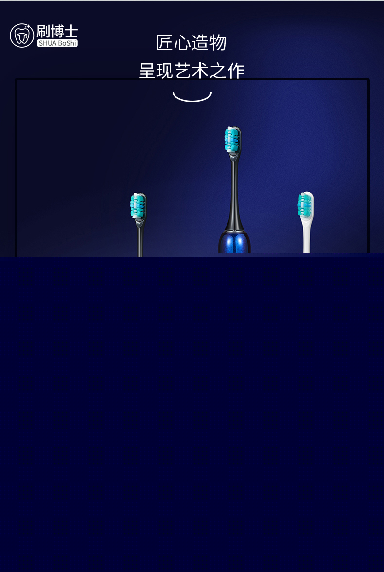 刷博士【S300智能聲波電動(dòng)牙刷】是一款集潔齒、護(hù)理及體驗(yàn)煥然一新于一身的多功能聲波電動(dòng)牙刷,采用一鍵式的簡(jiǎn)約設(shè)計(jì),5檔清潔模式,隨心掌控;此外,植入了模式記憶功能,牢牢記住你的刷牙習(xí)慣,下次刷牙,無(wú)需費(fèi)時(shí)再次選擇;強(qiáng)勁的續(xù)航功能,一年僅充1次電;高顏值的顏色設(shè)計(jì),皓月白、睿智黑、深邃藍(lán)等多種顏色選擇,遇上不同風(fēng)格的你。