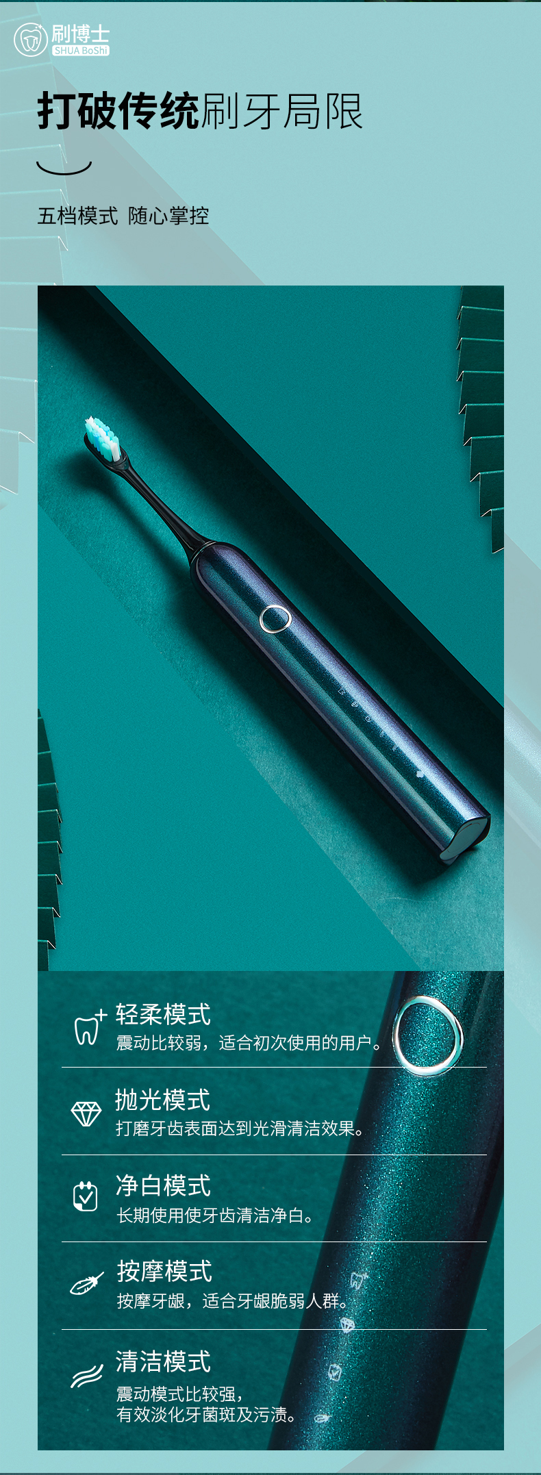 刷牙模式:一鍵5檔模式